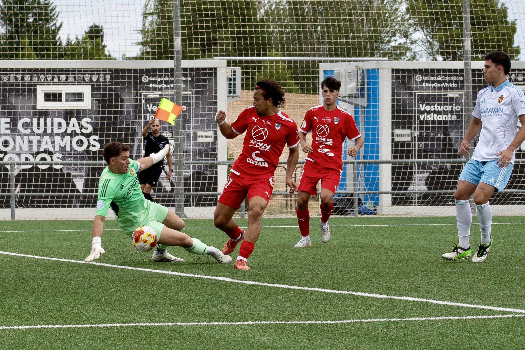 Con el partido prácticamente resuelto, el Deportivo Aragón se quedaría con otro jugador menos por roja directa, lo que aún hacia más cuesta arriba cualquier posibilidad de hacer “daño” a los nuestros, a pesar de la amplia diferencia ya existente que reflejaba el marcador.